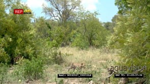 Young Leopard cub walking from one bush to another MS