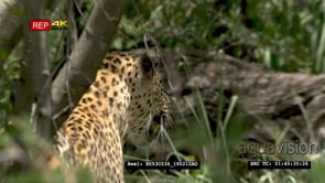 Leopard stalking prey in bush CU
