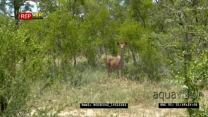 Greater Kudus walking in green bushveld WS