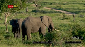 Elephants grazing on GREEN African grassland Ms