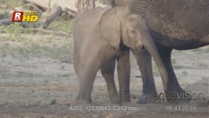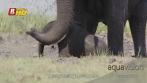 Select options DownloadAdult female African Elephant helping its calf during a mud bath, standing and walking. MLS;DAY.