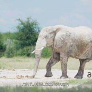 Male African Elephant covered in clay and walking pass by the camera.