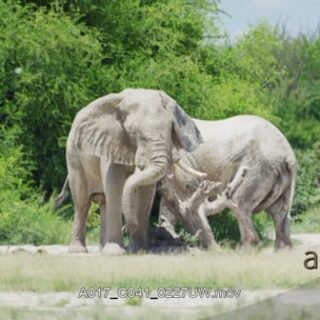 Two African Elephant standing and practising mating behaviour.