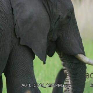 African Elephant MS walking, feeding on grass and looking around.