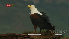 Select options DownloadAfrican Fish eagle perched on tree log, foraging from a high angle and looking around. HA. DAY.