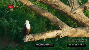 Select options DownloadAfrican Fish eagle perched on a tree, looking around and foraging from a high angle, MWS;DAY.