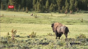 Bison herd grazing on the grass land WS