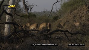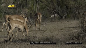 Aerial Drone shot bushveld Antelope general behaviour in the distance