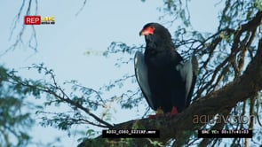 Bateleur eagle sitting on top of a tree, scouting and looking around.