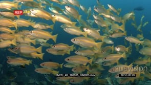 A large school of Bigeye snappers swimming past by the camera GOOD LIGHT