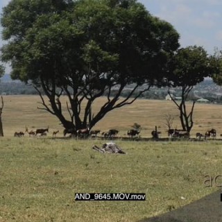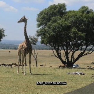 Giraffe standing and watching the new born calf on the ground GOOD LIGHT