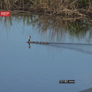 Carolina duck and a flock of Black-bellied Whistling ducks with ducklings on a dam moving around GENERAL BEHAVIOUR