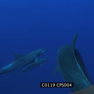 A school of bottlenose dolphins swimming around UW GENERAL BEHAVIOR