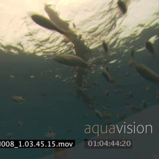 BAITBALL UW GALAPAGOS SHARKS, GALAPAGOS DOLPHINS AND BONITO TUNA AND BIRDS DIVING INTO BAITBALL