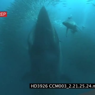 Select options DownloadDusky Sharks Cape Gannets Common Dolphins African Penguins around baitball shark bumps camera as Bryde’s whale feeds through sardine baitball below UNDERWATER HANDHELD