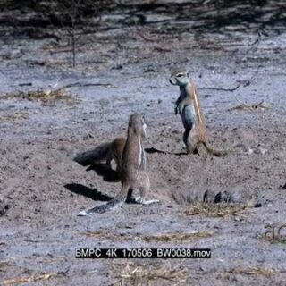 Male cape ground squirrel defending territory by chasing an intruder away