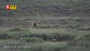 Select options DownloadAdult female Grizzly bear chasing Coyote off elk carcass, MWS;DAY