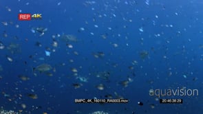 School of Damselfish pass over the reef