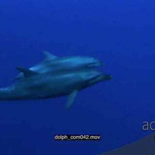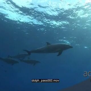 Indo-Pacific Bottlenose Dolphins swimming slowly underwater and passing by camera.