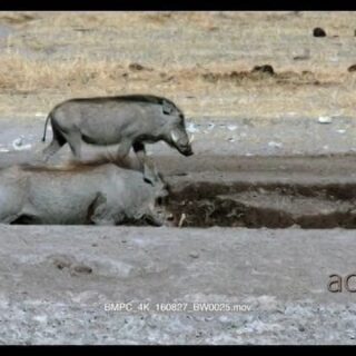 Warthog mother and piglets at waterhole