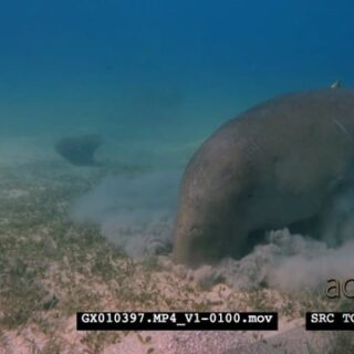 Close up shot of a dugong eating