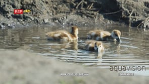 Egyptian goose goslings paddling in puddle