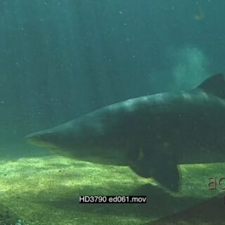 Bull Shark and Lemon Shark swimming underwater passing by camera MS PAN HAND, filmed in an Aquarium.