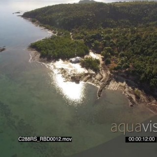 AERIAL of the Madagascar Island and boat sailing GOOD LIGHT