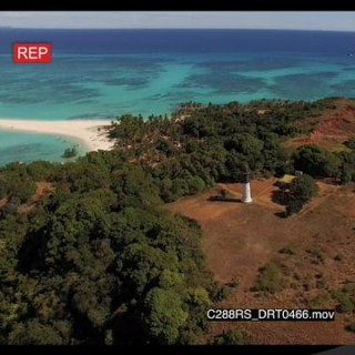 AERIAL of the Madagascar Island and the light house on the Island GOOD LIGHT GREEN