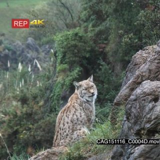 Eurasian Lynx siting on prairie looking around LS