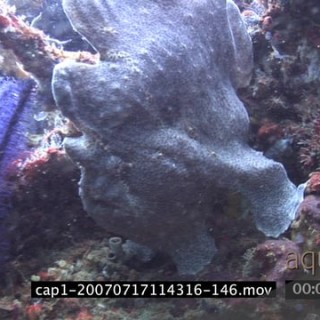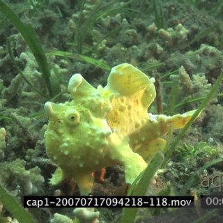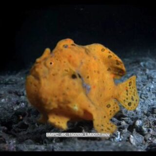 Frogfish swimming underwater in an aquarium and walking MLS PAN HAND