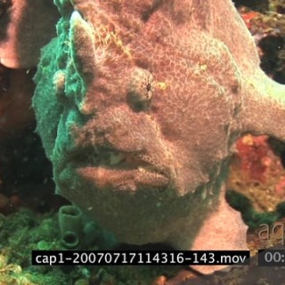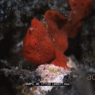 Frogfish standing underwater in ocean and breathing MS TRA MLS HAND
