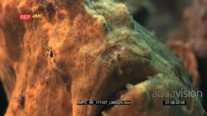 MS TO CU Orange painted frog fish breathing deeply swims away