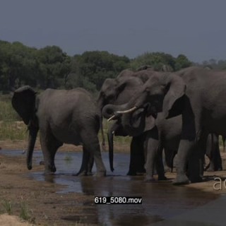 Elephant herd drinking, elephant calf struggling to get up GREEN MLS ZO LS