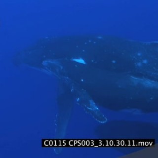 Humpback Whale floating and swimming with a calf rolling and coming out of the blue MLS HAND TOPSIDE
