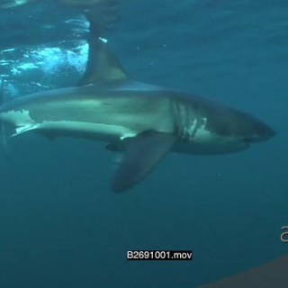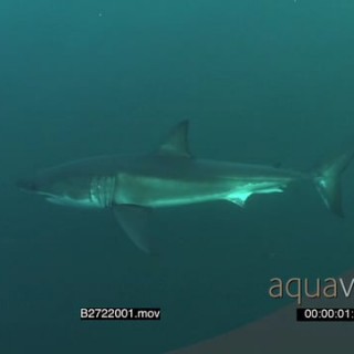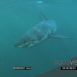 Select options DownloadA Great white shark gently swimming underwater in ocean then turning back UW HAND