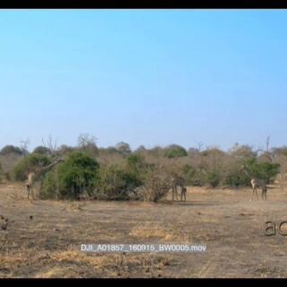 Aerial Drone over bushveld Giraffe herd general behaviour