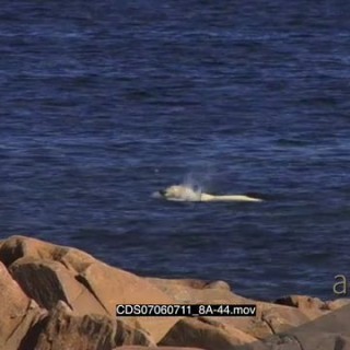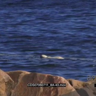 Polar bear swimming in ocean boulders in FG