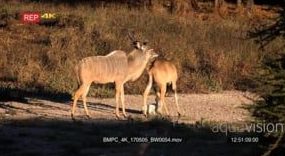 A frisky male greater kudu with its gorgeous horns follows a female around waiting for the opportunity to mate GOOD LIGHT