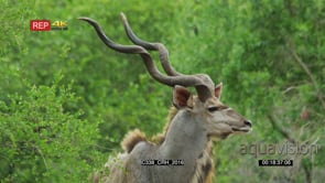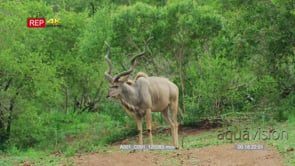Greater Kudus walking in green bushveld WS