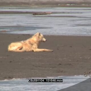 Wolf hunting salmon, walking and walking around.