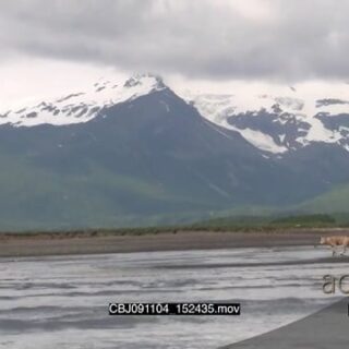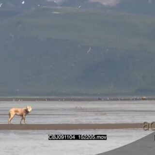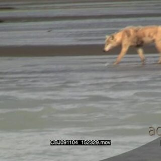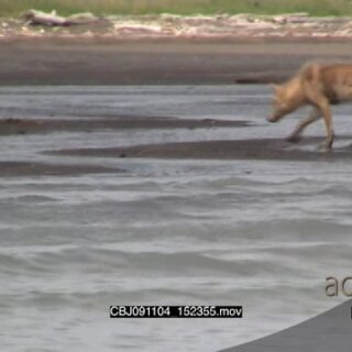 Wolf hunting salmon, walking and searching around.