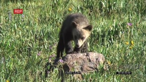 Grizzly Bears play fighting on grass XLS