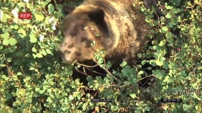 GRIZZLY BROWN BEAR Feeding on Berries in Bush GENERAL BEHAVIOUR