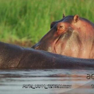 Two Hippos wading, mating and looking around.