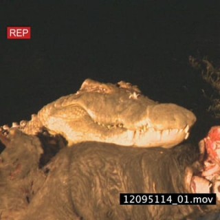 African Lion feeding on a Buffalo carcass at NIGHT, Lion attack large crocodile and crocodile lunge at Lion SPOT LIGHTS