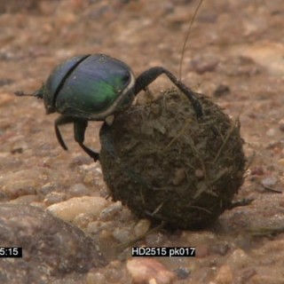 Dung beetle navigating and rolling dung SCENIC