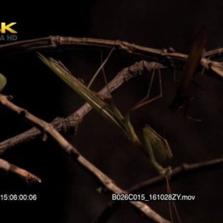 Praying Mantis on a plant grooming MACRO