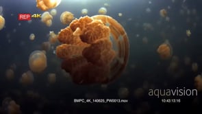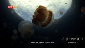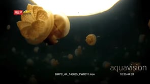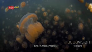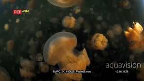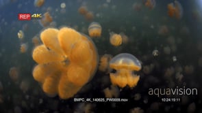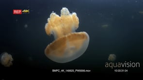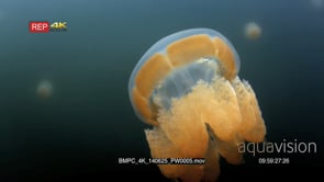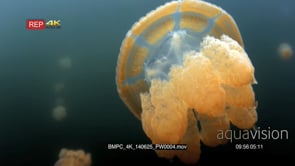 Select options DownloadClose up of an undulating Golden Jellyfish,Mastigias papua etpisoni in Jellyfish lake on Eil Malk island,Koror, Palau (fifth Lake)