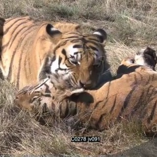 A pride of lions sniffing on a dead cud killed by a lioness and and the lioness biting the cub MWS
